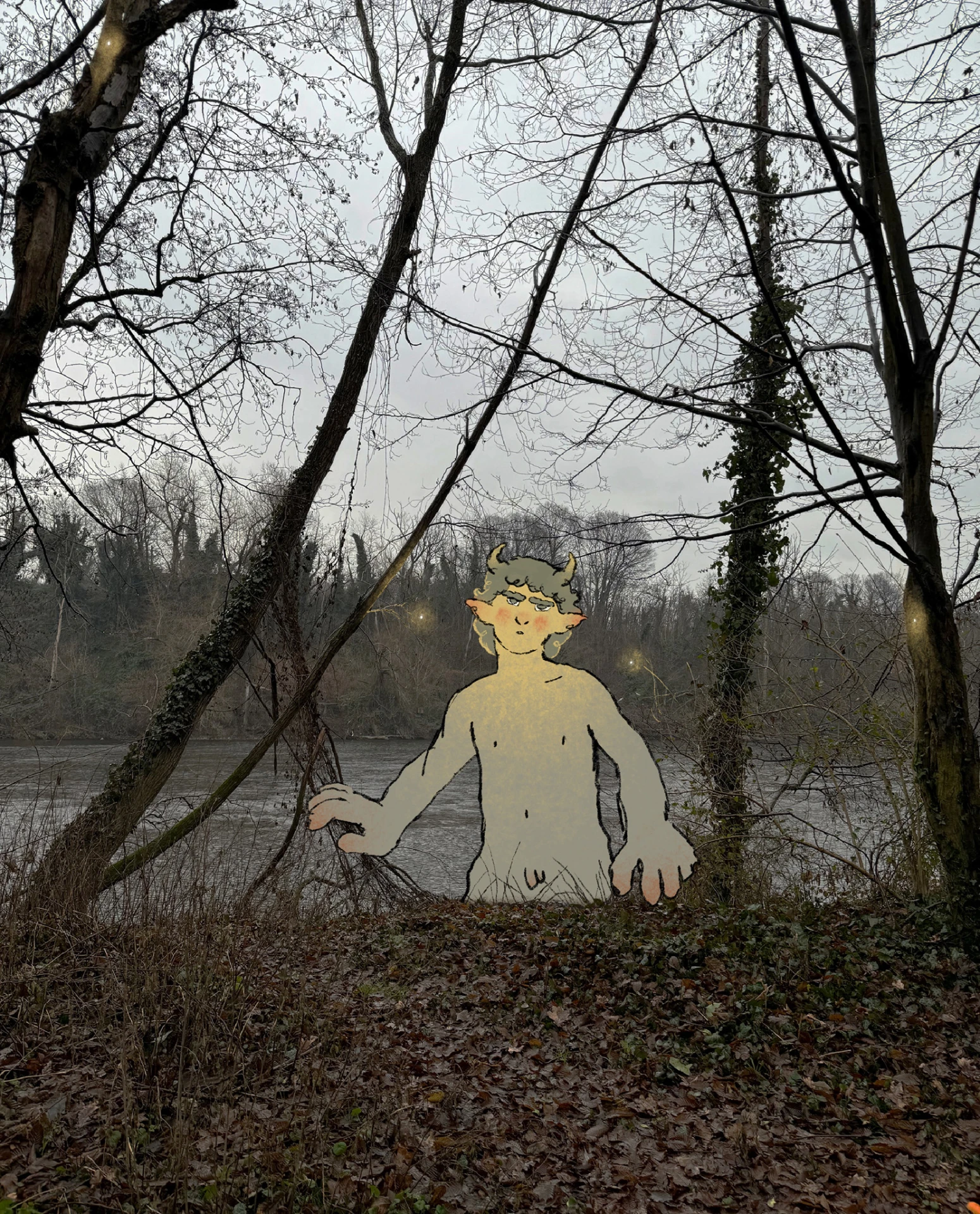Some experiments I made with pictures I took by the river during a rainy day, 2025.